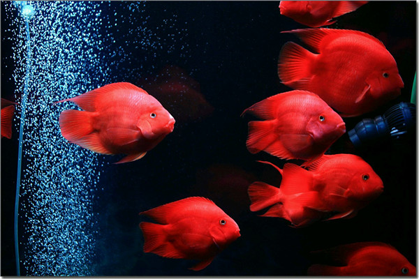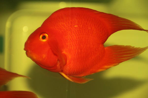 5 、一颗心鹦鹉鱼。它是利用手术的方法剪掉仔鱼尾巴的血鹦鹉鱼,倒立时看象心的形状。选择好的一颗心除了要具备普通或元宝鹦鹉鱼本来的特征外,主要还要看“心”的形状做的如何,背鳍和臀鳍的交界部位要形成完整的心形平面,不能开衩太大,形成大裤裆。也不能上下鳍交差形成剪刀状。一颗心完美的更不好找,生长速度也比普通鹦鹉鱼慢,能长的个头也要小一些。