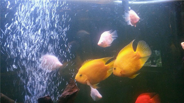 9、黄鹦鹉鱼。体色为黄色,不喂增色饲料才能保持黄色,否则会变红。