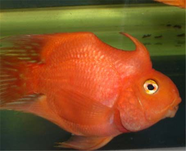 3、元宝鹦鹉鱼(红元宝)。元宝鹦鹉鱼的特征:元宝鹦鹉鱼的头背部交接部位不象普通鹦鹉鱼那样凹陷很多,而是比较圆滑的弧线直接过渡下来,身体明显短圆,肚大。论坛中有不少鱼友有这类鱼,通过鹦鹉鱼图片就能看出。