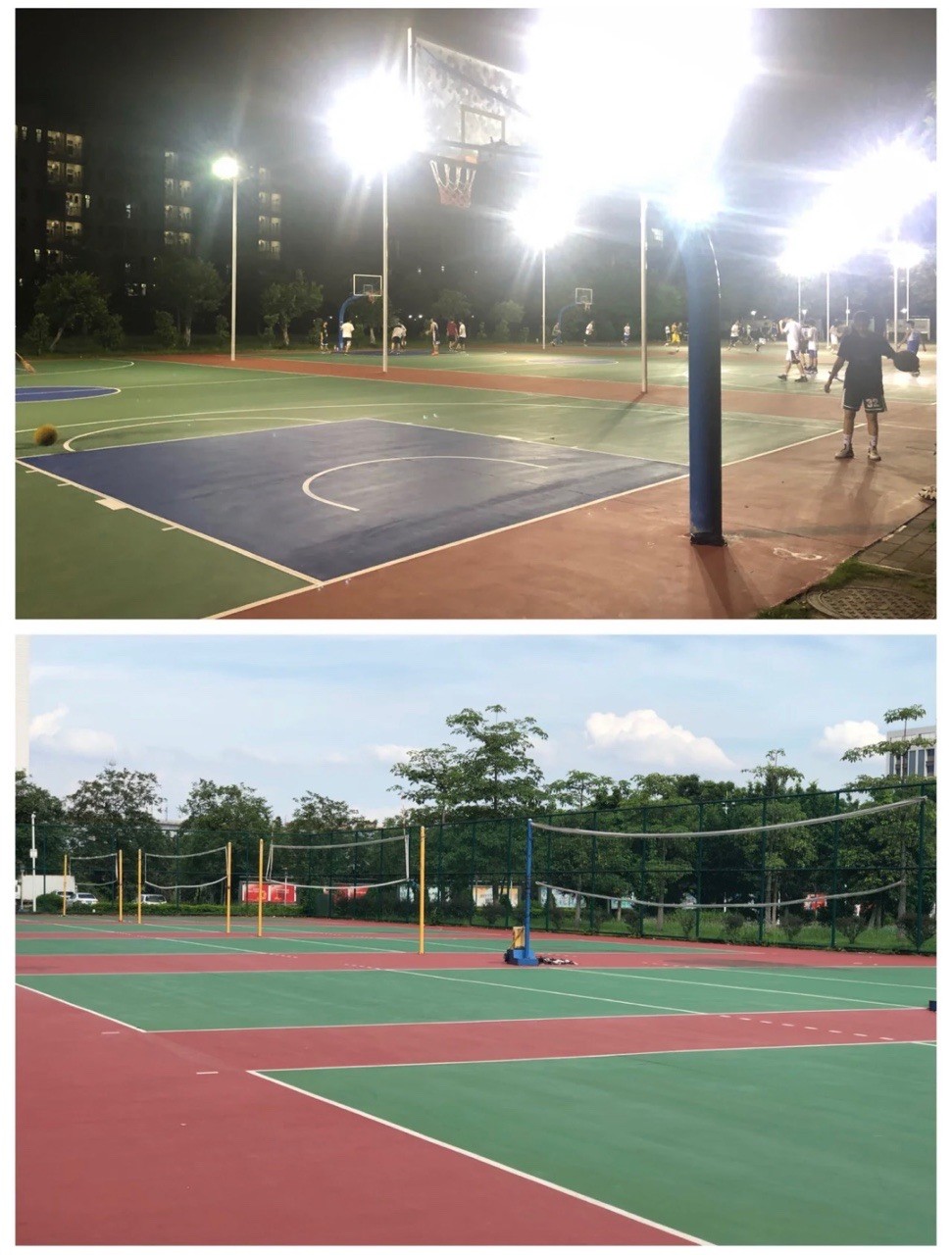 花都校区具备基本的运动设施,包括排球场、羽毛球场、篮球场、操场、足球场等等。