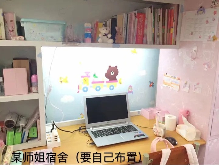 宿舍为4人间、带有空调、独立卫生间和浴室、上床下桌、Wi-Fi全覆盖、有电梯、宿舍楼下有学院超市、ATM存取款机,洗衣机要自己买,单车什么的可以停在宿舍楼下。