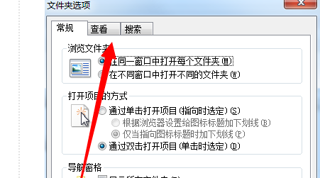 3、进入乎缺文件夹选项界面后,点击该界面的查看。