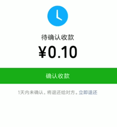 4、如果在收到对方的转账24小时内未确认收款系统将自动退还,如下图所示: