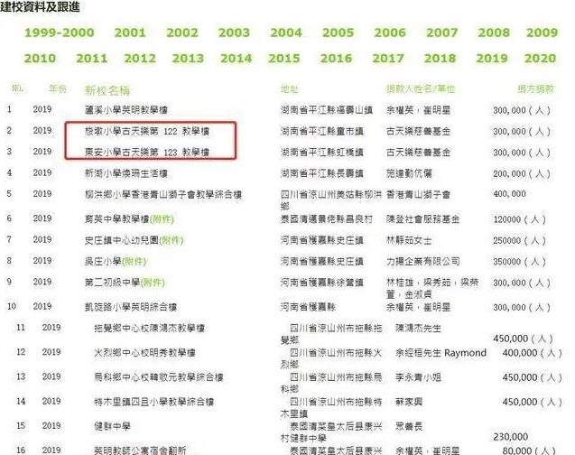 如果做公益的人,不是古天乐,那该又是谁呢?有很多网友猜测是发哥,因为发哥曾经讲过他会裸捐,但现在好像还没到发个裸捐的时候。有网友也猜测是小明哥,黄晓明是内地慈善一哥,经常捐款,一捐就是几千万。我们不用猜了,从天乐的基金会官网上,我们可以很清楚的看到他做公益的情况。在这十一年间,基金会总共捐建了100多栋教学楼。
