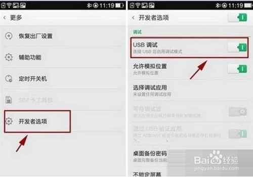 首先我们进入“设置”-"关于手机”界面,连续点击“版本号”以打开‘开发者选项“,并在其中开启”USb调试“功能。