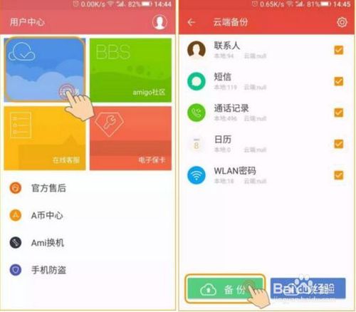 我们可以通过”云同步“功能完成金立手机数据备份恢复,依次进入”设置“-”用户中心“-->”云服务“,在此可以完成手机数据的备份与恢复。